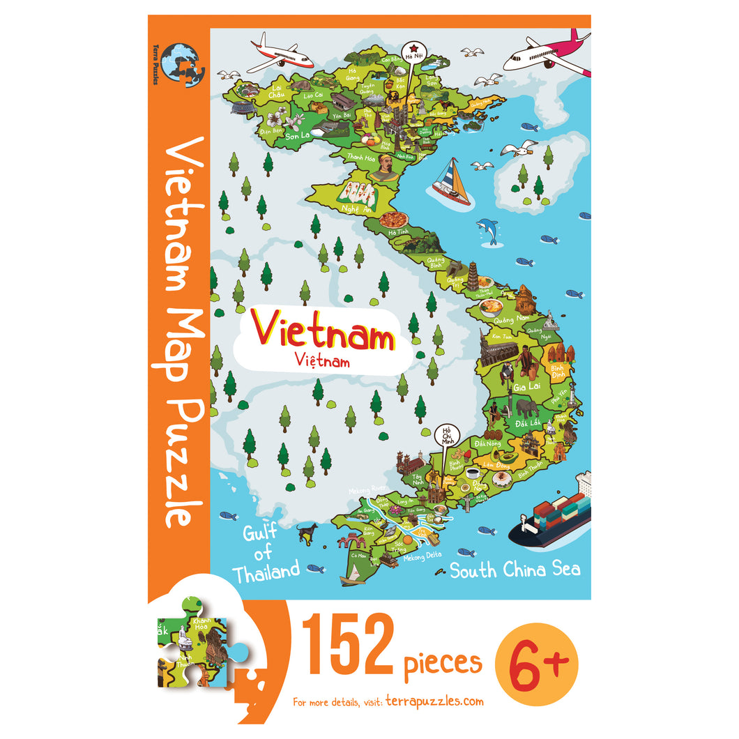 Vietnam Illustrated Map Wooden Jigsaw Puzzle for Children and