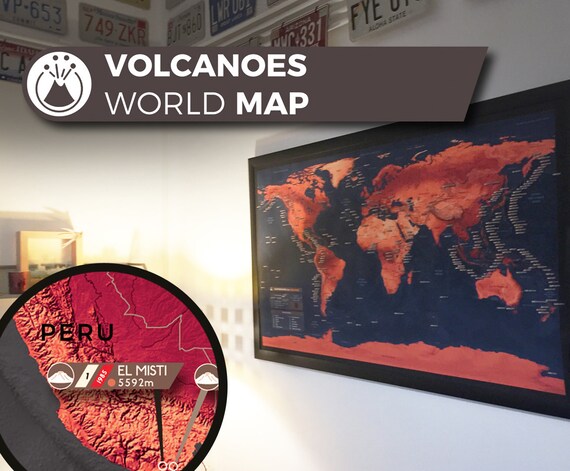 Volcano World Map, a Unique and Customised Map With All Major